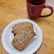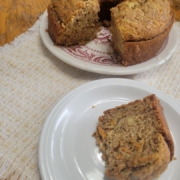 My husband grew up in the era of Crisco baking. After we were married, I began looking for quick bread recipes that used healthier oils and stumbled upon this one. Then David declared it to be “better than his mother’s.” and I knew I had scored Big Time.