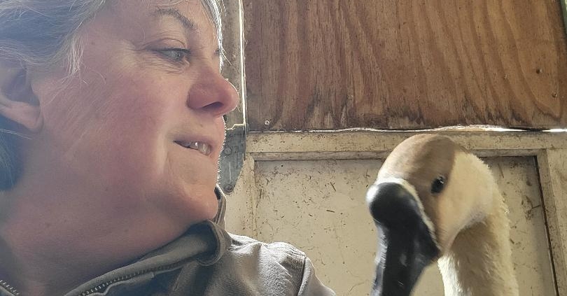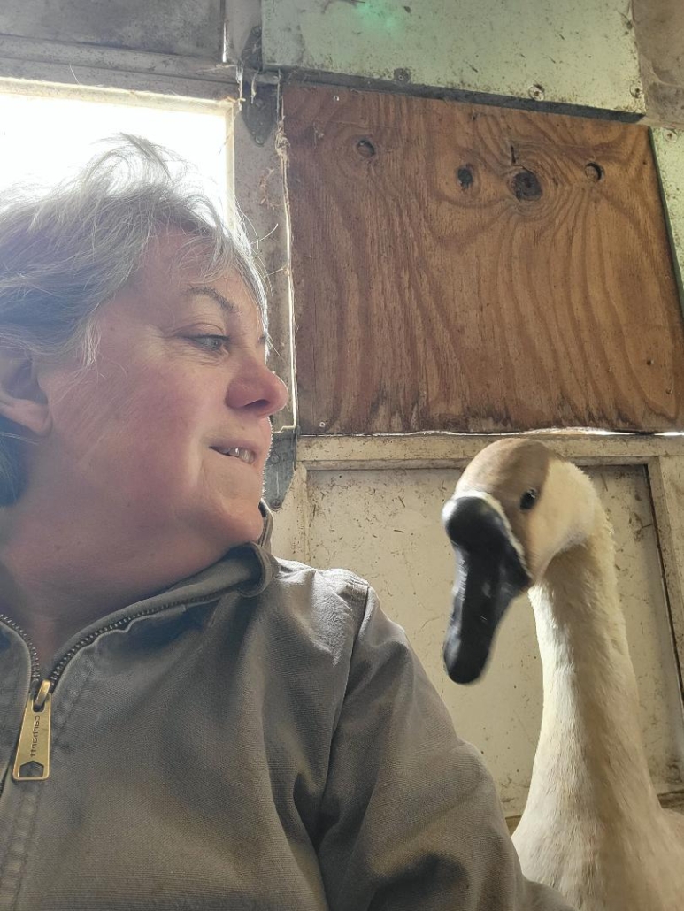 A few years ago, my grandson began his campaign to add a goose to our growing menagerie. My hesitation centered around visions of customers being chased back to their cars by territorial birds. When Oliver pled for me to save a gentle giant who was temporarily living at Grandpa Schoenborn’s farm, I knew I had been beaten. I mean, how does “Ma” say no to that? George arrived at Love Led Farm.